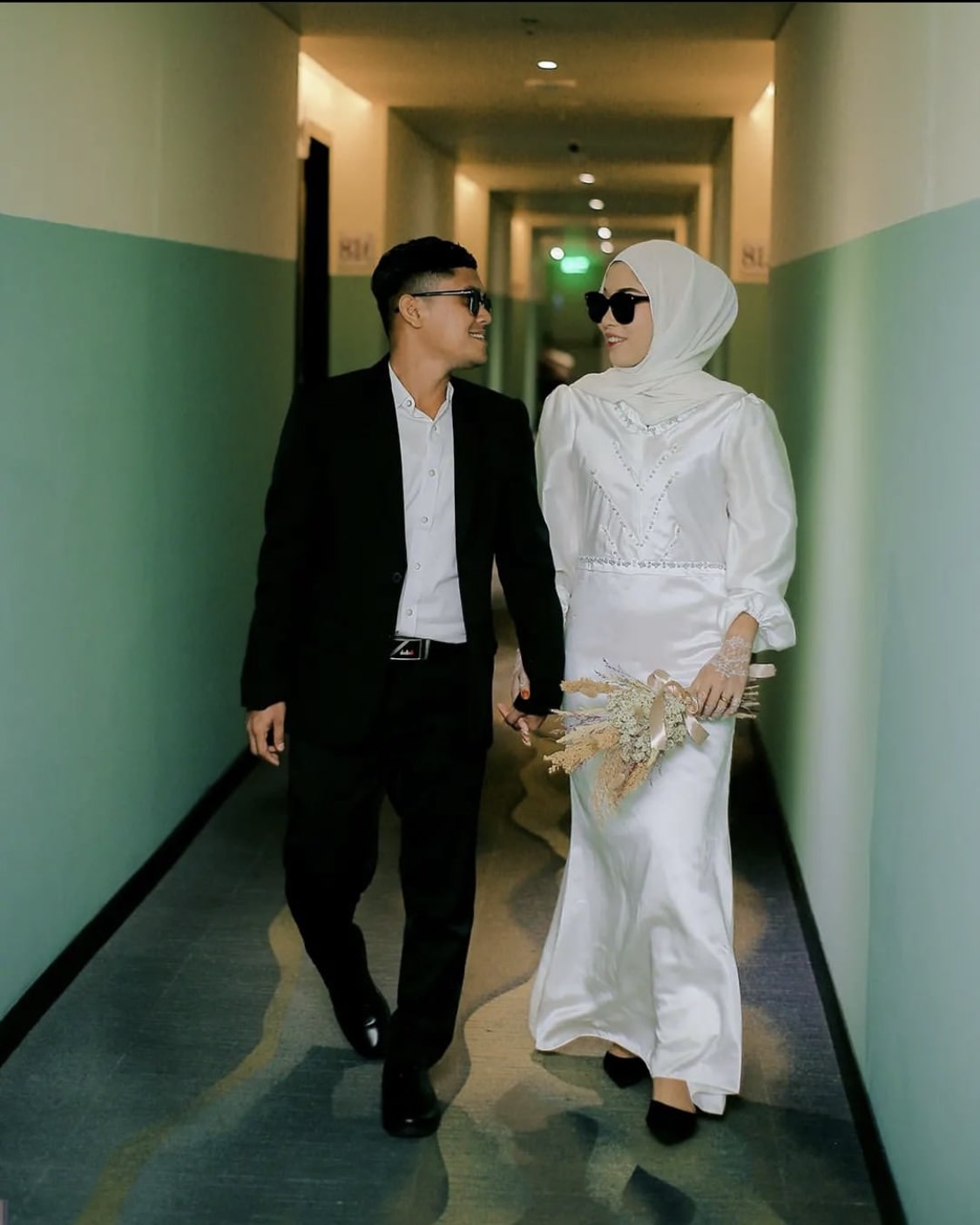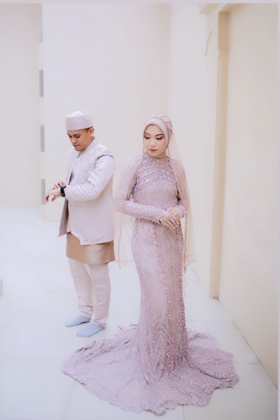 Mendoakan kedua mempelai "Barakallahu laka wa baraka'alaika wa jama'a bainakuma fi khayr". ( H.R. Abu Daud No. 2130)